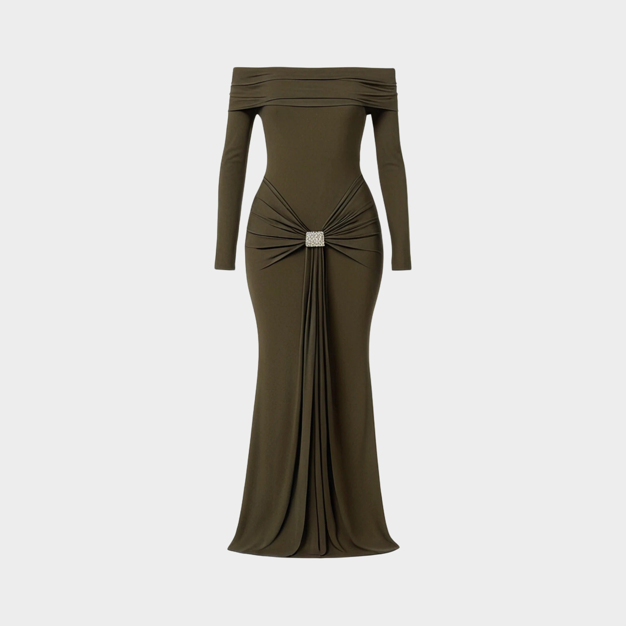 Discover the embodiment of elegance with the JoJaxs Off-Shoulder Knit Long Dress. This exquisite gown beautifully marries timeless sophistication with contemporary design, making it a must-have for any discerning fashionista. The off-shoulder silhouette gracefully showcases your neckline, while the floor-grazing hem adds an air of grandeur to your evening attire.